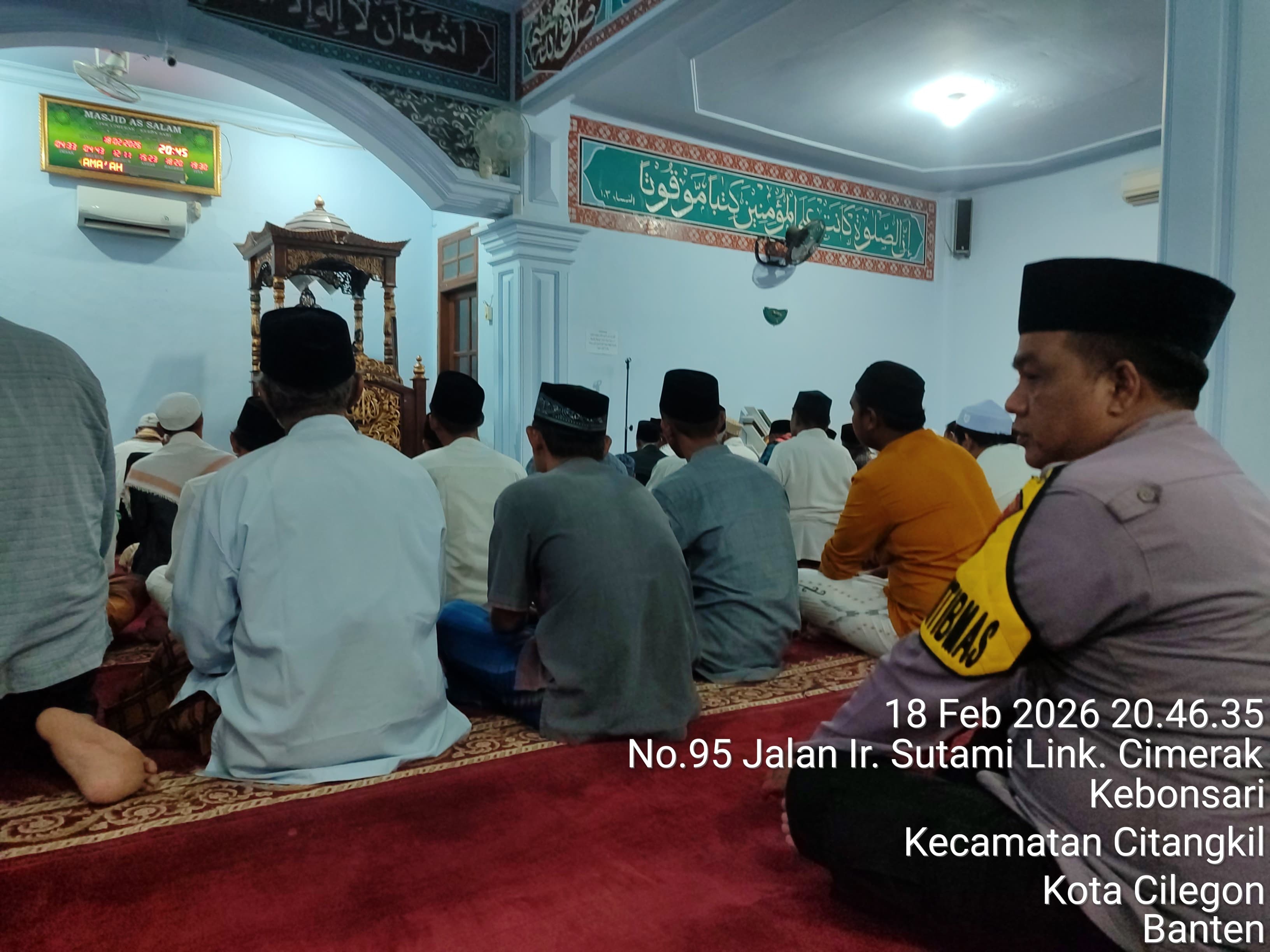 Cilegon - Bhabinkamtibmas polsek Ciwandan Polres Cilegon Polda Banten Silahturahmi Dan Tarawih Keliling Bersama warga Masyarakat lingkungan yang bertempat di masjid lingkungan binaannya, Kamis (19/02/2026).Kapolres Cilegon Polda Banten AKBP Dr. Martua Raja Taripar Laut Silitonga Yang diwakili Kapolsek Ciwandan Polres Cilegon Polda Banten KOMPOL Achri Dwi Yunito Mengatakan Bahwa kegiatan sholat...