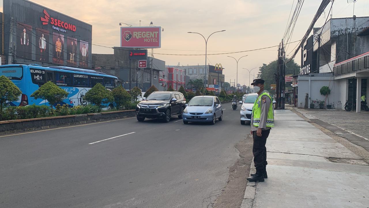 Personel Sikeu Polres Cilegon Laksanakan Pengaturan Lalu Lintas di Wilayah Hukum