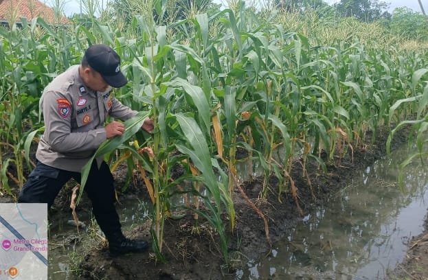 POLSEK PURWAKARTA MONITORING WILAYAH YANG TERDAMPAK BANJIR DAN LAKUKAN PEMBAGIAN SEMBAKO