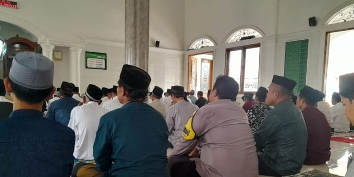 Personil Bhabinkamtibmas Kelurahan Tegalbunder, Aiptu Wawan Setiabudi, bersama dengan pihak Polsek Purwakarta dan Polres Cilegon, melaksanakan kegiatan sholat Jumat keliling berjamaah di Masjid Raudatul Mutaqien, lingkungan Kubang Lampit