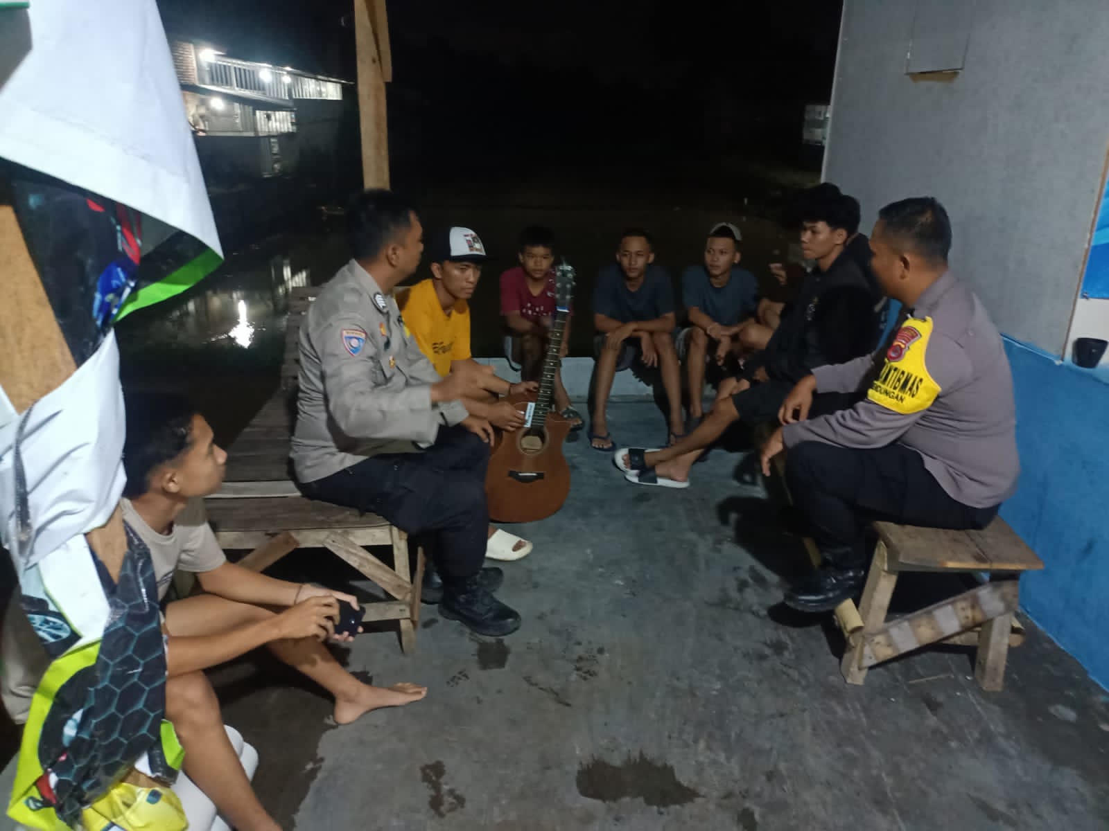 Anggota Polsek Cilegon sambangi ronda malam sampaikan pesan kamtibmas**-POLRES CILEGON-* Polda Banten. Dalam Rangka Ciptakan situasi kamtibmas yang kondusif Polsek Cilegon laksanakan himbauan kamtibmas kepada rt dan rw serta warga sekitar agar selalu menjaga kamtibmas secara bersama-sama salah satunya mengaktifkan dan meningkatkan kegiatan siskamling di wilayahnya. serta sebagai...