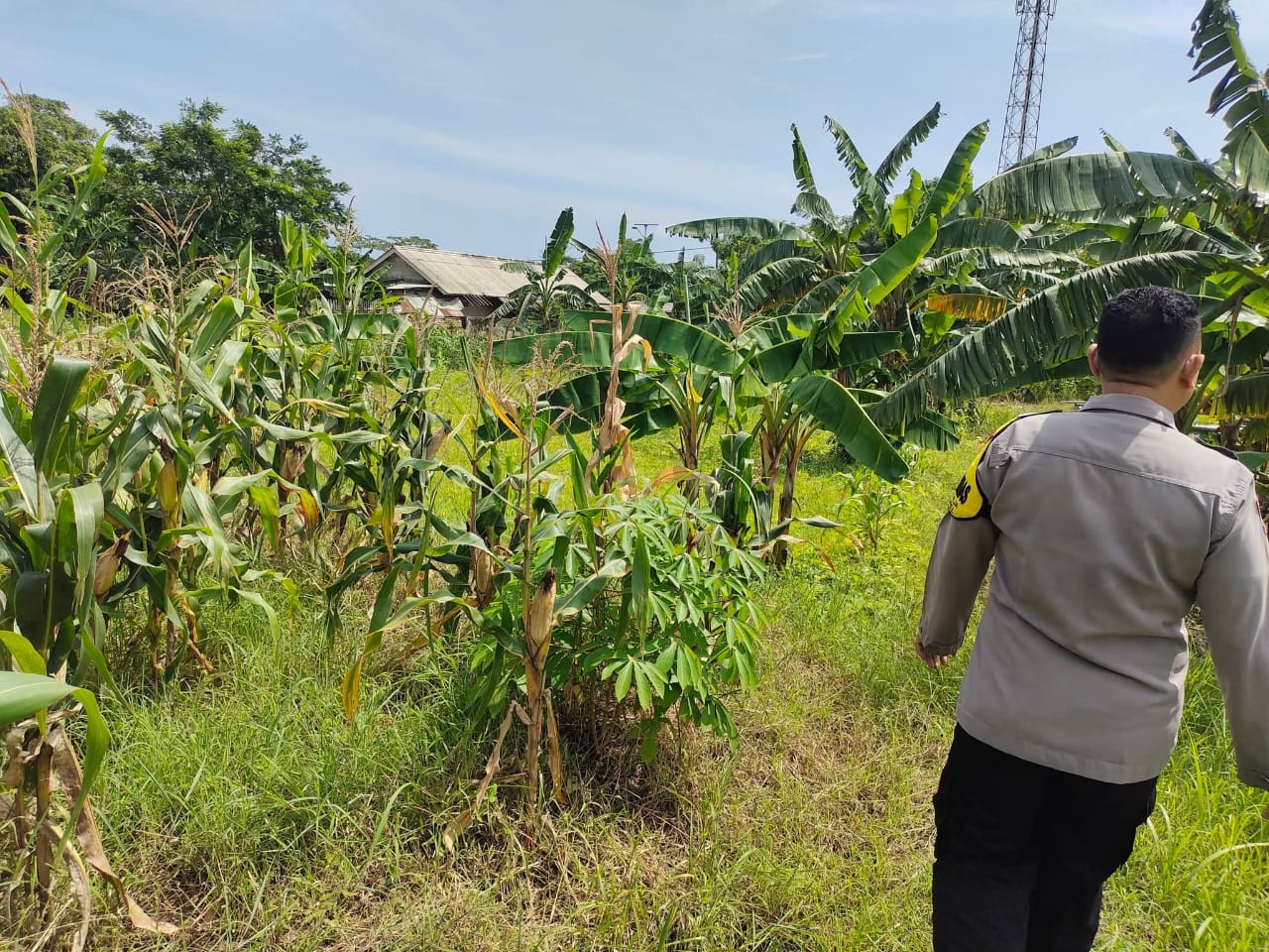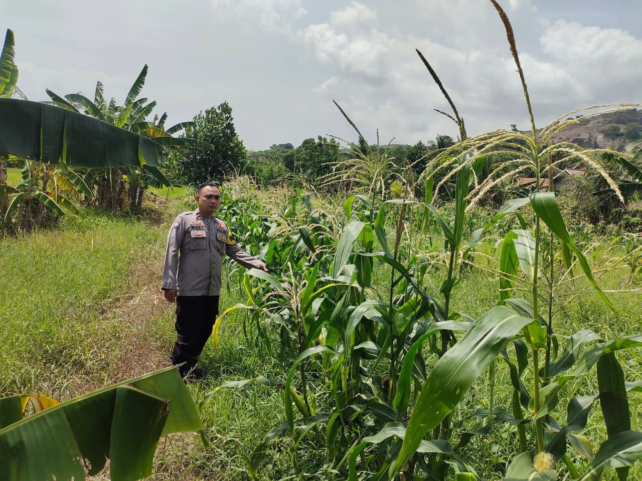 Pantau lahan jagung pok tani sinarjaya kecamatan.puloampel Desa Puloampel oleh Bhabinkamtibmas Polsek Puloampel