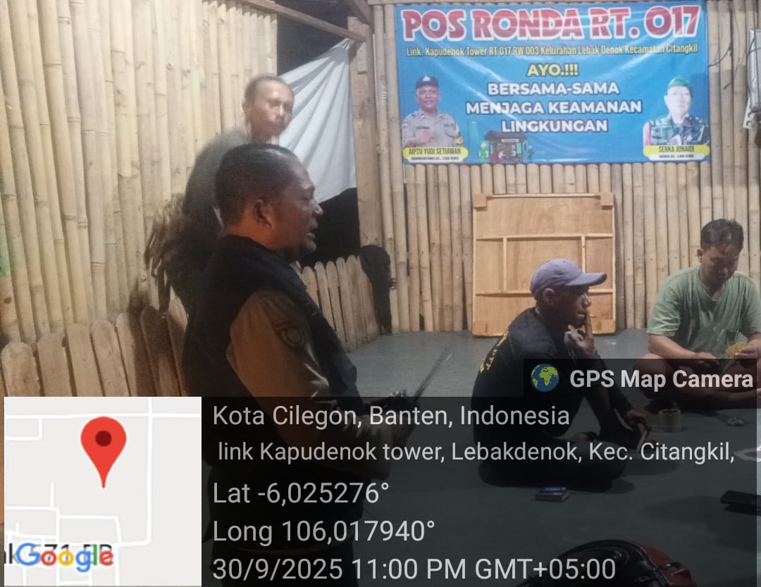 Cilegon - Bhabinkamtibmas Polsek Ciwandan Polres Cilegon Polda Banten kontrol Pos Ronda dan Berikan himbauan kepada pihak terkait dan warga, agar kegiatan Siskamling ditingkatkan lagi, Rabu (01/10/2025).