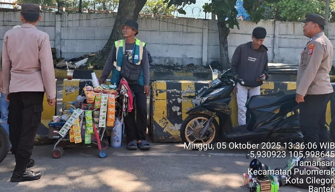 Cilegon - Personel Polsek Kskp Merak Polres Cilegon Polda Banten melaksanakan sambang dan patroli kawasan pelabuhan merak dalam rangka menjaga Harkamtibmas di Kawasan Pelabuhan Merak, Minggu (05/10/2025).