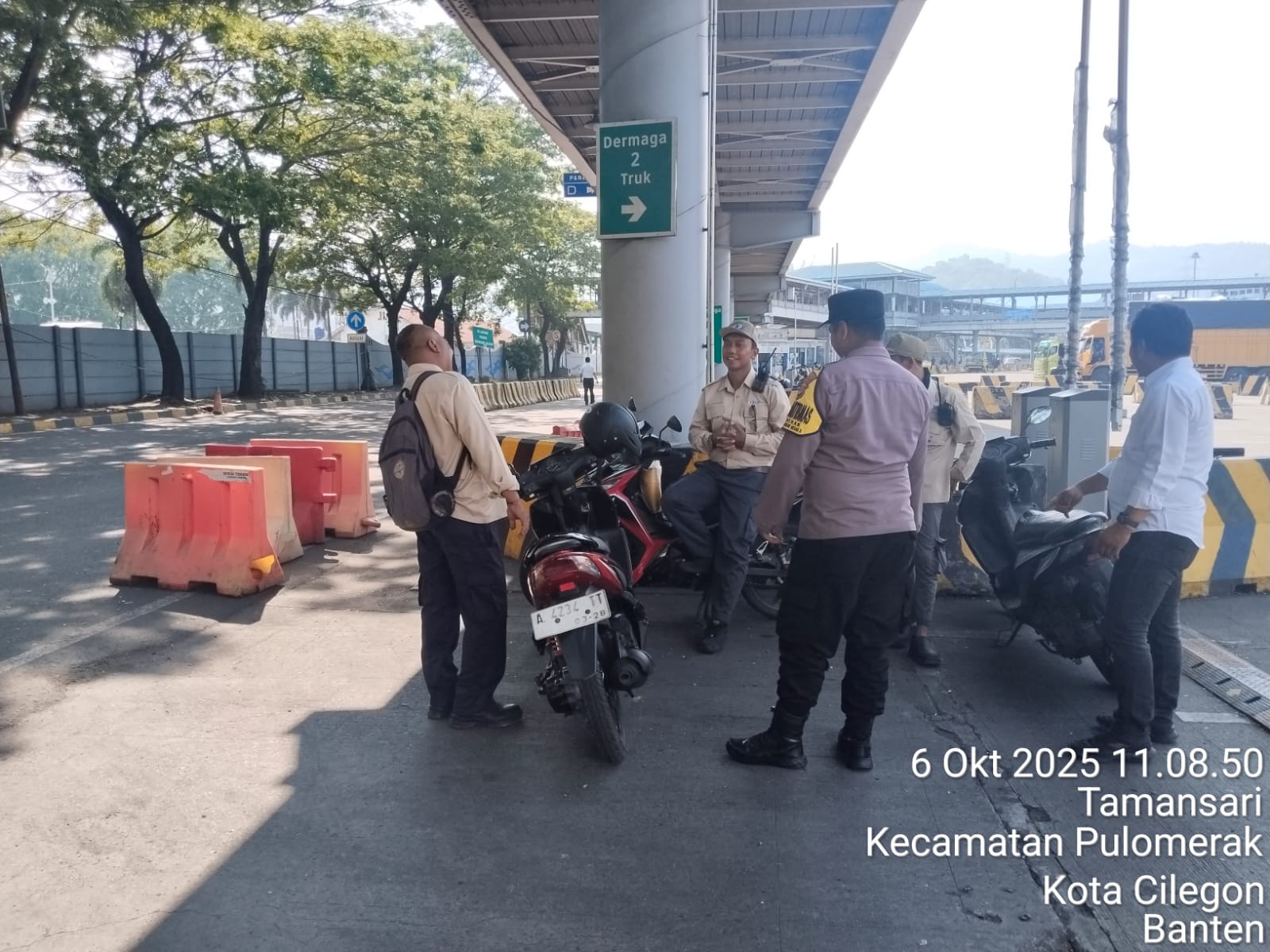 Cilegon - Personel Polsek Kskp Merak Polres Cilegon Polda Banten melaksanakan sambang dan patroli kawasan pelabuhan merak dalam rangka menjaga Harkamtibmas di Kawasan Pelabuhan Merak, Senin (06/10/2025).
