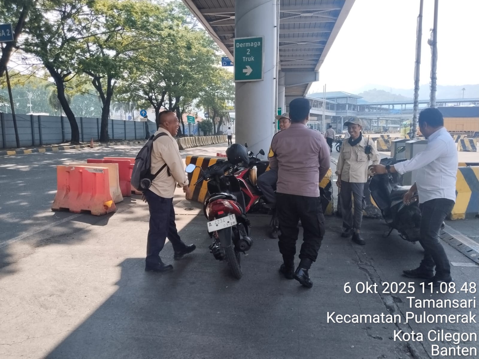 Cilegon - Personel Polsek Kskp Merak Polres Cilegon Polda Banten melaksanakan sambang dan patroli kawasan pelabuhan merak dalam rangka menjaga Harkamtibmas di Kawasan Pelabuhan Merak, Senin (06/10/2025).