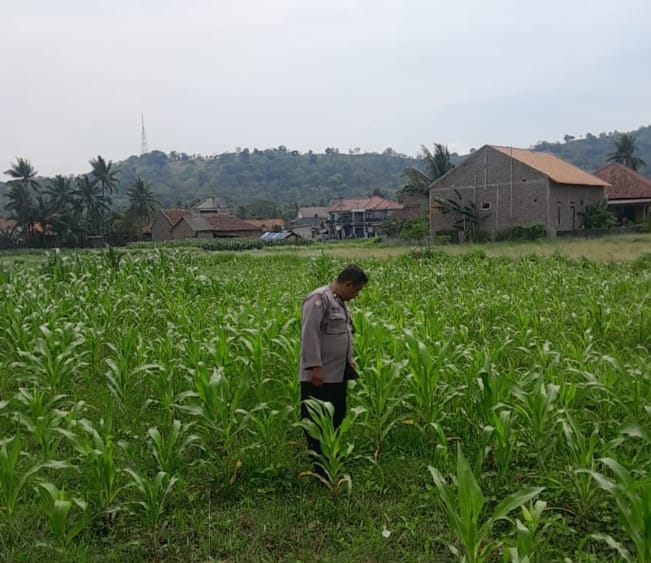 Bhabinkamtibmas Kel. Tegalbunder Cek Tanaman Jagung Pastikan Tumbuh Bagus Unggul