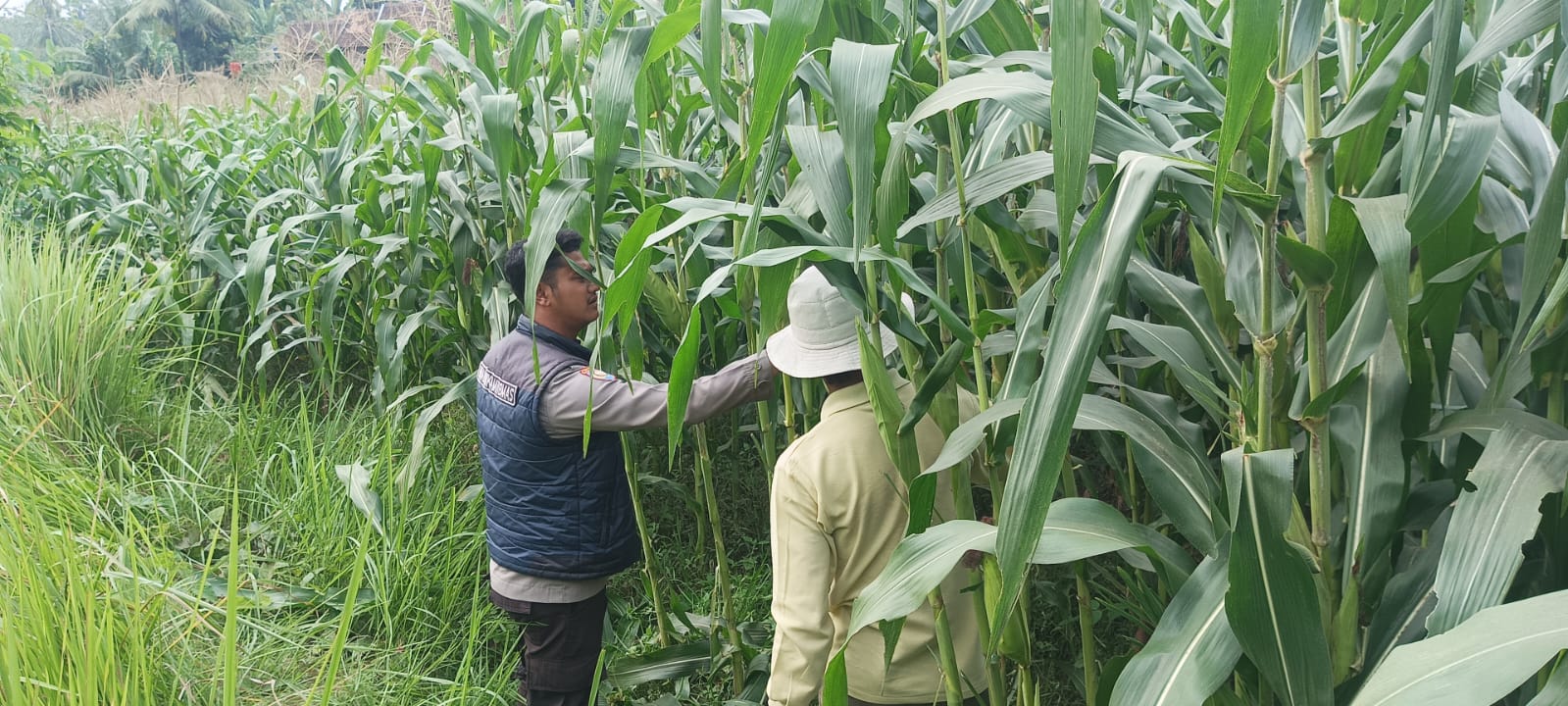 Bhabinkamtibmas Secara Rutin Monitoring Perkembangan Dan Pertumbuhan Tanaman Jagung.