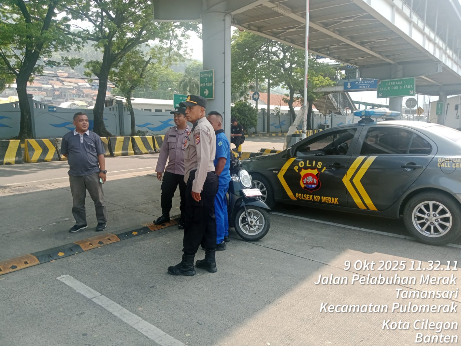 Cilegon - Personel Polsek Kskp Merak Polres Cilegon Polda Banten melaksanakan sambang dan patroli kawasan pelabuhan merak dalam rangka menjaga Harkamtibmas di Kawasan Pelabuhan Merak, Kamis (09/10/2025).