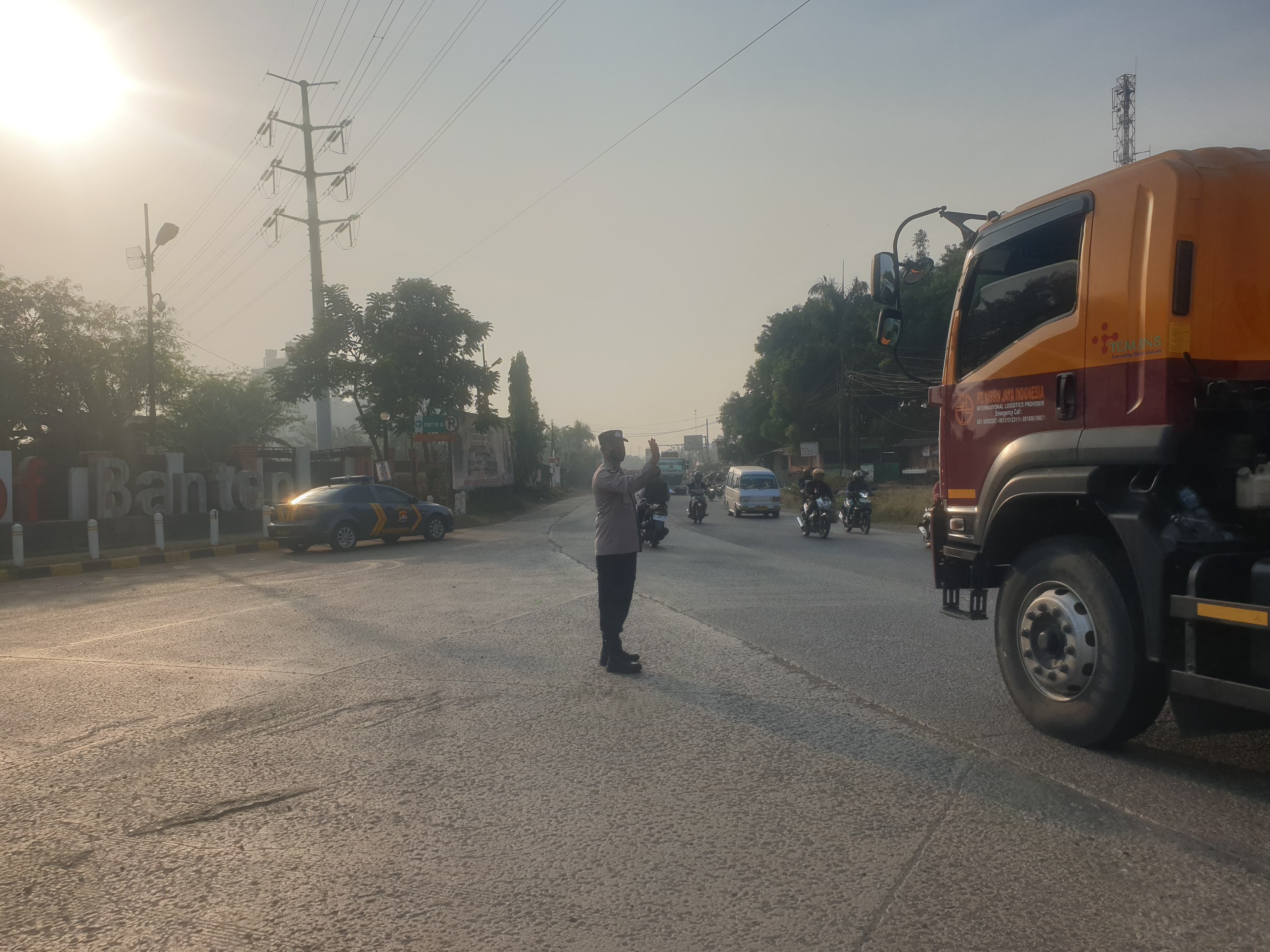 Kapolres Cilegon AKBP Martua Raja Taripar Laut Silitonga Melalui Kapolsek Kskp Banten Polres Cilegon AKP Fredo Leonard menyampaikan Laksanakan Pengamanan Sesuai plotinganya lakukan Pengaturan Supaya Arus Lalu Lintas tetap Berjalan lancar dan Pastikan tidak ada hambatan.