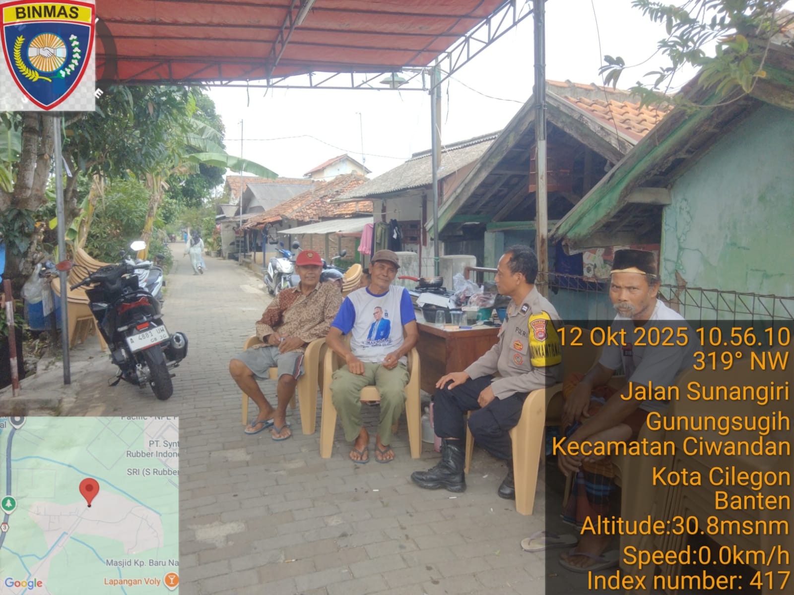 Cilegon - Konsisten dalam menjalin silaturahmi dan membangun komunikasi yang baik dengan Masyarakat binaannya masing – masing ,Bhabinkamtibmas Polsek Ciwandan Polres Cilegon Polda Banten Melaksanakan Sowan dan Sambang Dialogis menciptakan kamtibmas yang kondusif di daerah binaannya,Minggu (12/10/2025).
