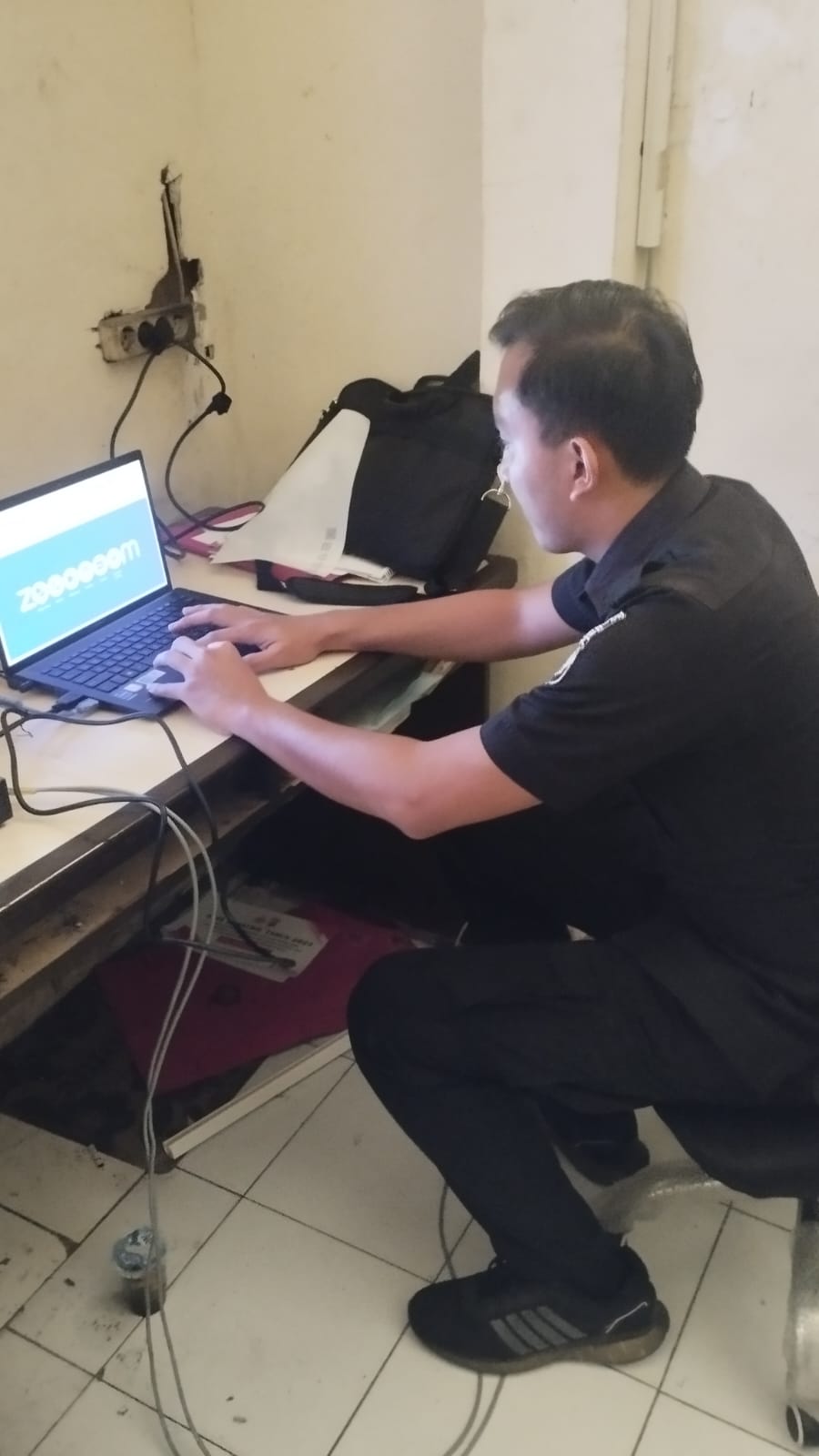 Anggota Tik Polres Cilegon Menyiapkan Sarana dan Prasarana Untuk Kegiatan Zoom meeting Dalam pelaksanaan kegiatan zoom meeting tersebut anggota TIK Polres Cilegon yang bertanggung jawab untuk menyiapkan peralatan zoom. Selain itu agar di tidak ada gangguan jaringan sebelum pelaksanaan anggota TIK melakukan pemeriksaan terhadap sarana dan prasarana tersebut . Satu jam sebelum kegiatan zoom meeting itu dimulai. Kapolres Cilegon AKBP. DR. MARTUA RAJA TARIPAR LAUT SILITONGA. melalui Kasi TIK IPTU Lukman menyampaikan bahwa “untuk menunjang kelancaran penyampaian informasi anggota TIk Polres Cilegon selalu memeriksa sarana dan prasarana tersebut, sebelum maupun pada saat pelaksanaan akan selalu di monitor”