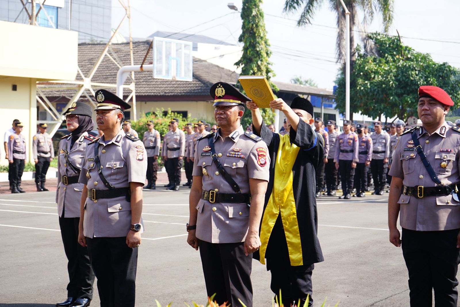 Rangkaian kegiatan sertijab diawali dengan pengambilan sumpah jabatan, disaksikan oleh para Pejabat Utama dan personel Polres Cilegon, kemudian dilanjutkan dengan penandatanganan fakta integritas sebagai bentuk komitmen moral dan profesionalisme pejabat baru dalam melaksanakan tugas.