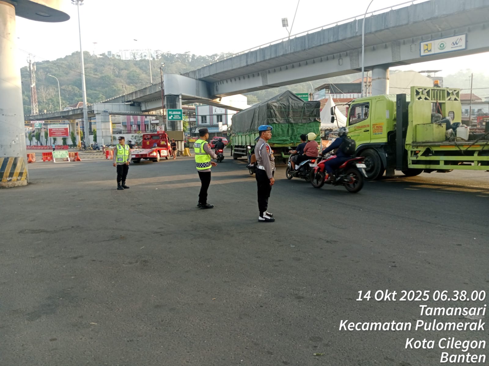 Cilegon - Dalam rangka peningkatan pelayanan prima kepada masyarakat, Kskp Merak Polres Cilegon Polda Banten melaksanakan pengaturan antrian R4 yang akan masuk ke Kapal Ferry di Pelabuhan Merak, Selasa (14/10/2025).