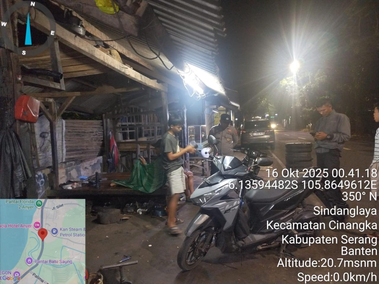 *Cilegon* – Dalam Rangka Pencegahan Kejahatan Jalanan dan Memelihara situasi keamanan dan menjaga serta memberikan rasa aman dan nyaman di masyarakat,Salah satu upaya untuk mewujudkan hal tersebut sebagaimana yang dilakukan oleh Personil Polsek Cinangka Polres Cilegon Polda Banten melaksanakan giat patroli blue light malam hari hingga menjelang pagi, Kamis (16/10/2025).