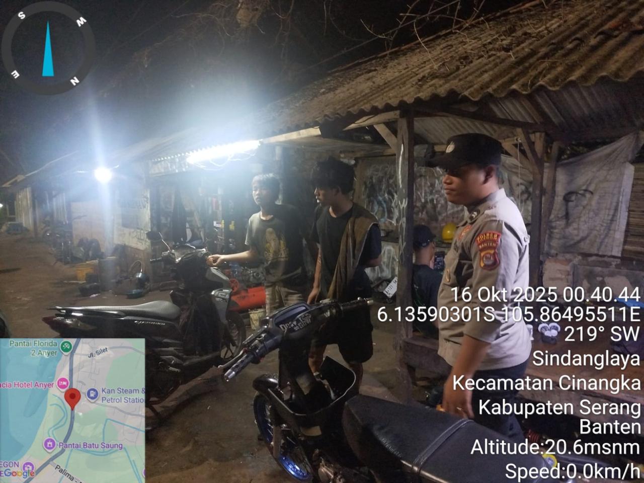 *Cilegon* – Dalam Rangka Pencegahan Kejahatan Jalanan dan Memelihara situasi keamanan dan menjaga serta memberikan rasa aman dan nyaman di masyarakat,Salah satu upaya untuk mewujudkan hal tersebut sebagaimana yang dilakukan oleh Personil Polsek Cinangka Polres Cilegon Polda Banten melaksanakan giat patroli blue light malam hari hingga menjelang pagi, Kamis (16/10/2025).