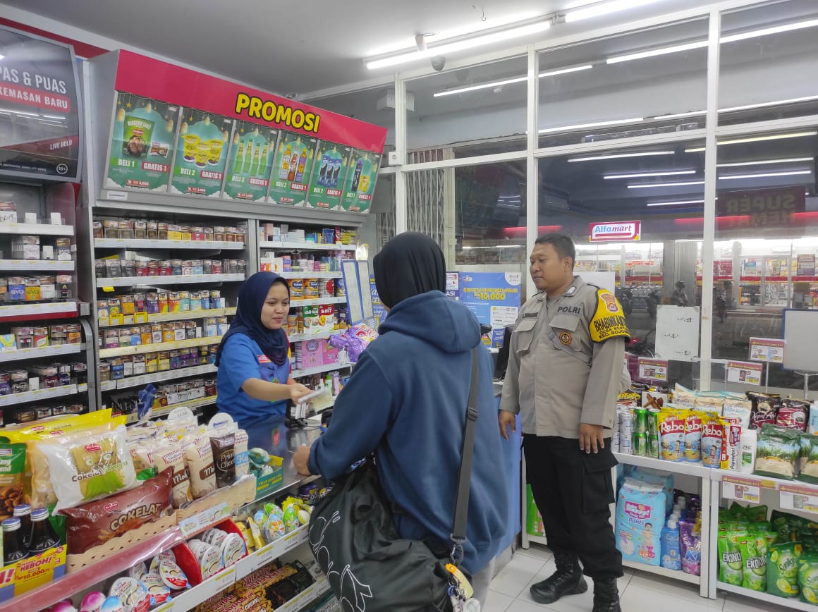 Bripka Gheri Polsek Bojonegara Laksanakan Sambang ke Karyawati Indomart Berikan Imbauan Kamtibmas Dan Sosialisasi Call Center 110
