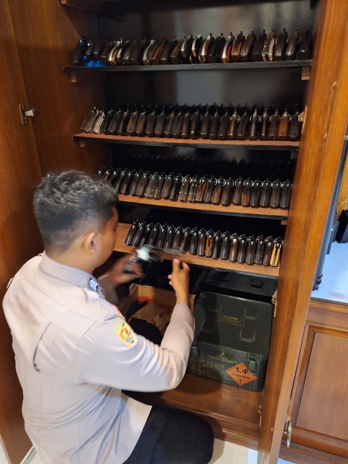 SOP yang ada dan selalu mengedepatkan keamanan dalam menyimpan senjata
