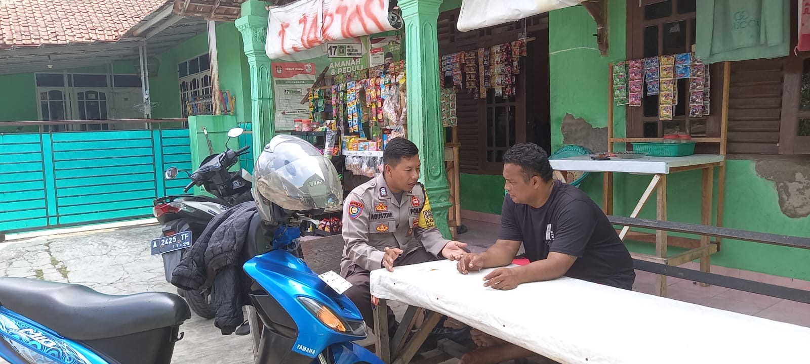 Bhabinkamtibmas Polsek Purwakarta, Bripka Agustoni, aktif menyapa warga di lingkungan Penyairan Atas, Kelurahan Kota Bumi, Kecamatan Purwakarta, Kota Cilegon, dalam rangka memberikan imbauan terkait keamanan dan ketertiban masyarakat (Kamtibmas), khususny