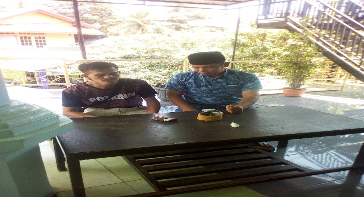 Personil sat intelkam melakukan koordinasi dengan tokoh pemuda kec. Jombang kota cilegon.