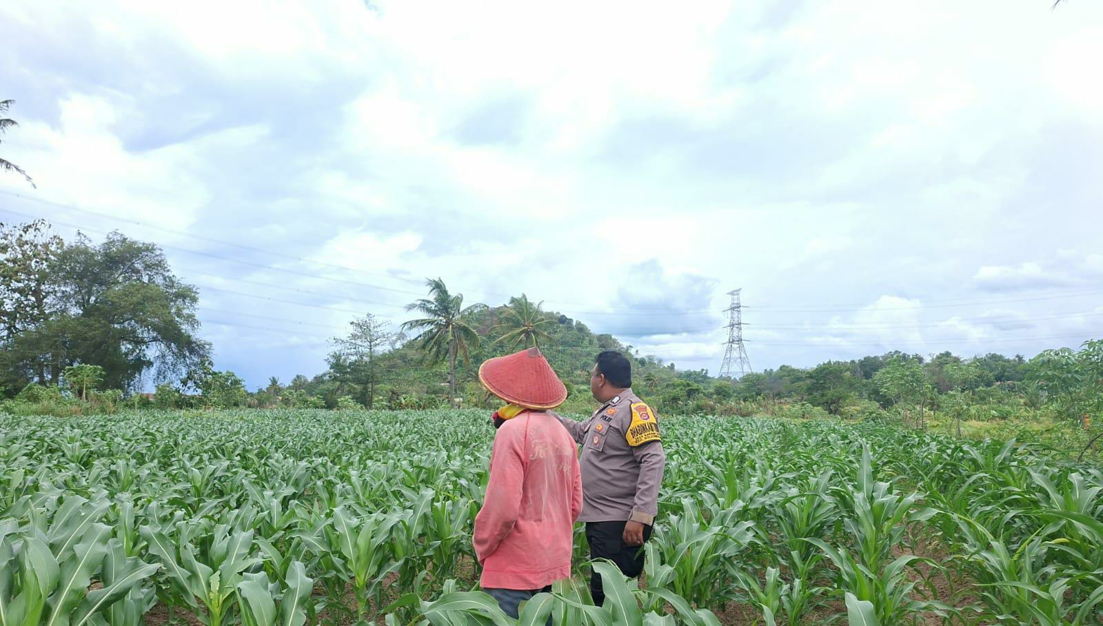 Pantau Tumbuh kembang Jagung Bhabinkamtibmas Ds Karang Kepuh Bripka Tri Handoko bersama Petani Dukung Ketahanan Pangan Pemerintah