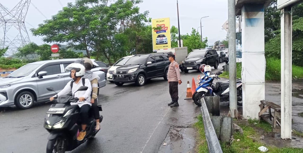 Cilegon - Pelayanan Kepada Warga Masyarakat dan Guna menciptakan situasi lalu lintas yang aman, tertib dan lancar, Personel Polsek Cibeber Polres Cilegon Polda Banten secara rutin melaksanakan pengaturan lalu lintas di sekitar Traffic Light PCI kota Cilegon.