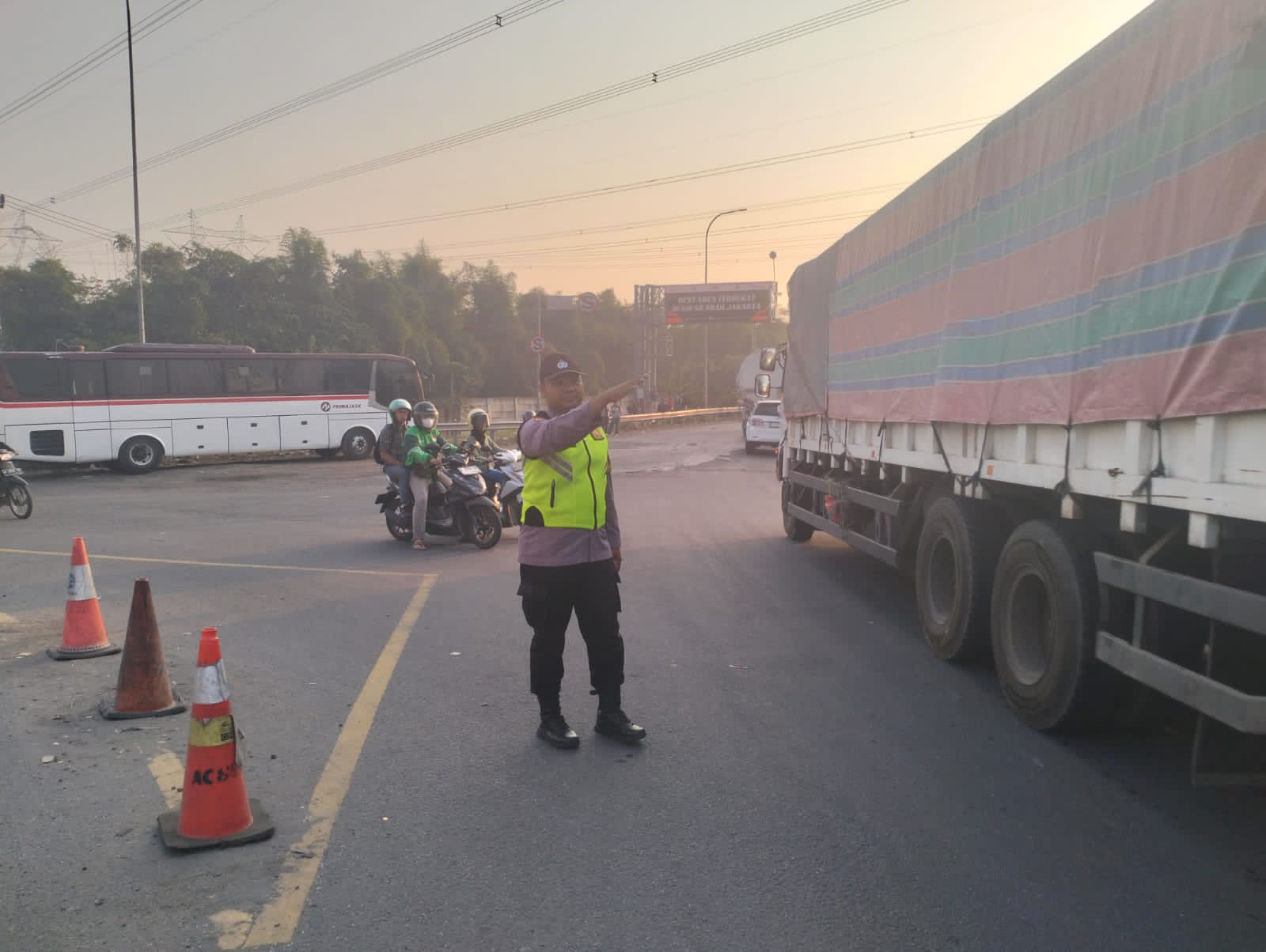 Antisipasi kemacetan, personil polsek cibeber lakukan pengaturan