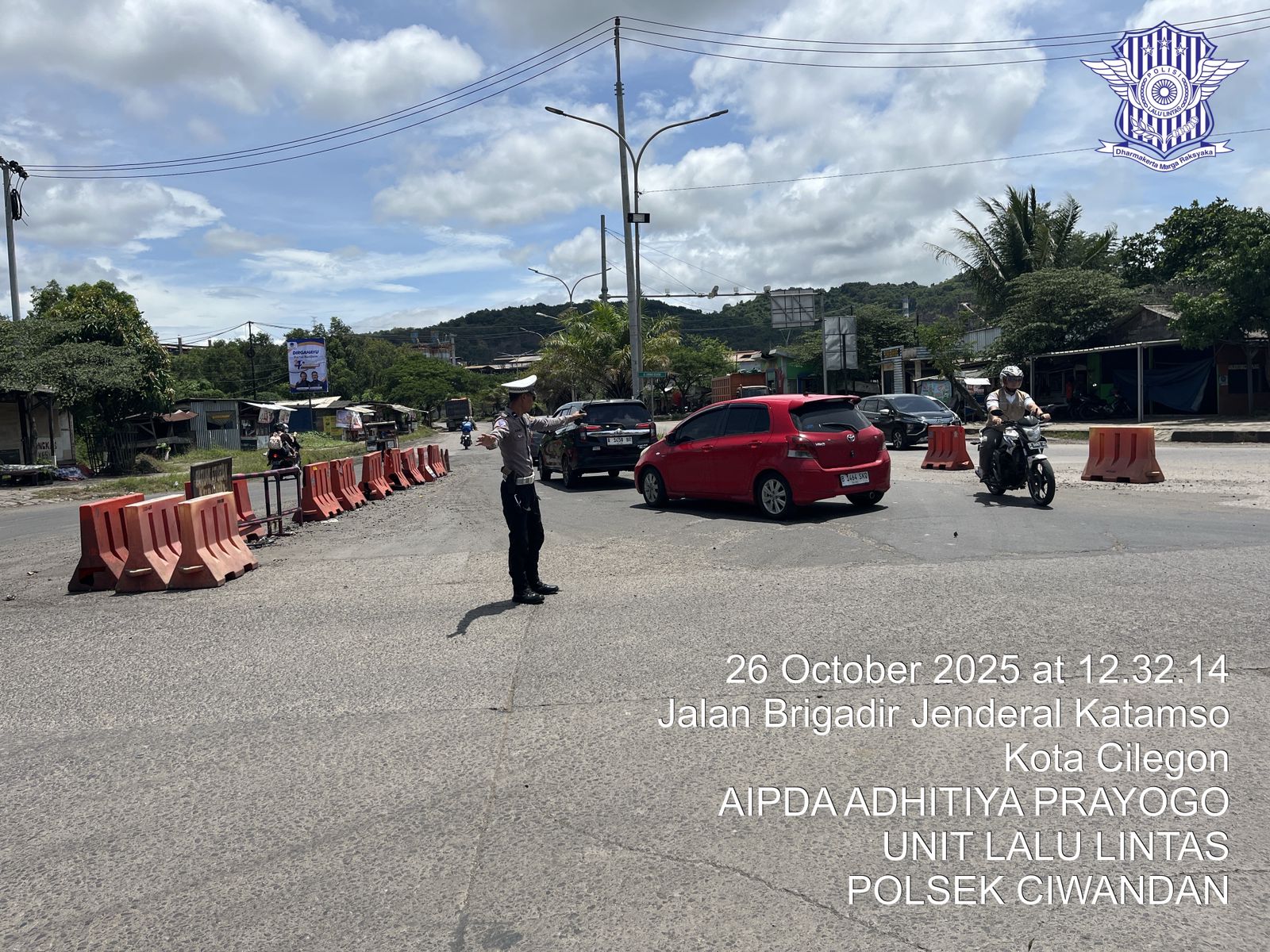 Cilegon - Weekend kali ini Personil Unit Lantas Polsek Ciwandan Polres Cilegon Polda Banten melaksanakan pengaturan lalu lintas di Simpang JLS tepatnya di Pertigaan depan PT. Semen Indonesia Demi Kelancaran Arus Lalu-lintas Wisata, Minggu (26/10/2025).