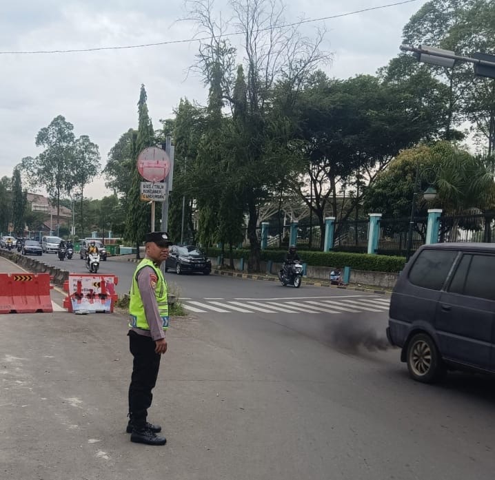 Personel Babinkamtibmas Polsek Purwakarta Atur Lalu Lintas di Simpang ADB