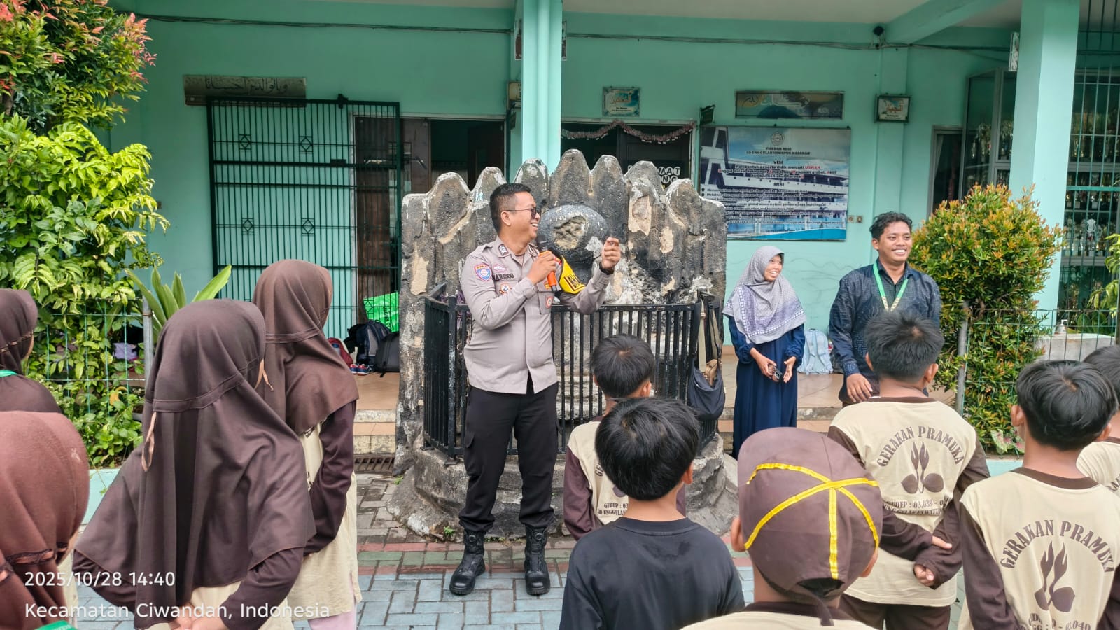 Cilegon -  Bhabinkamtibmas Kelurahan Samangraya Polsek Ciwandan Polres Cilegon Polda Banten BRIPKA Marisco melaksanakan kegiatan Program Polisi Sahabat Anak dalam rangka Pelaksanaan Commander Wish Kapolda Banten. Kegiatan ini dilaksanakan di SD Unggulan Uswatun Hasanah Kelurahan Samangraya Kecamatan Citangkil Kota Cilegon, Selasa (28/10/2025).