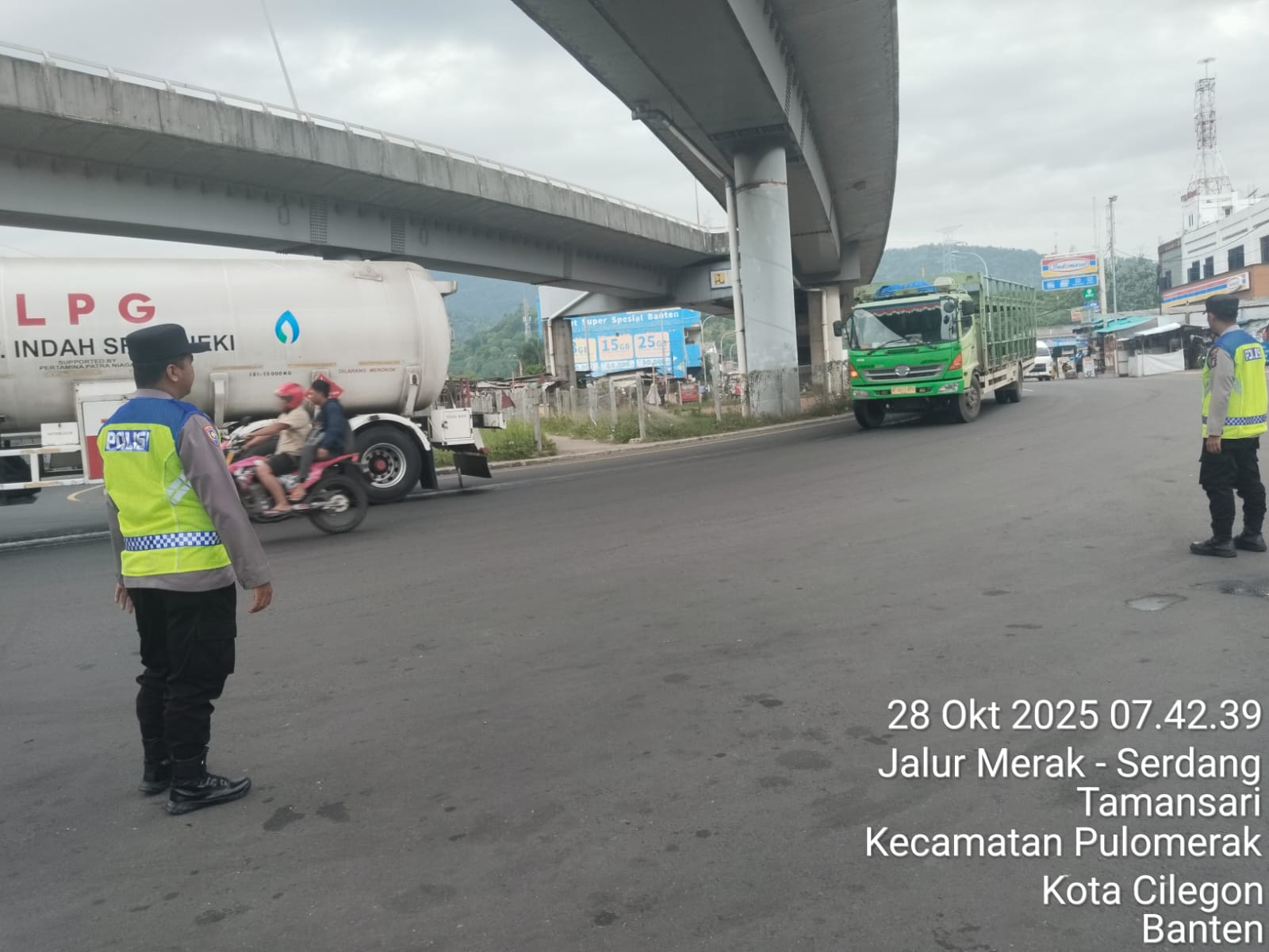 Cilegon - Dalam rangka peningkatan pelayanan prima kepada masyarakat, Kskp Merak Polres Cilegon Polda Banten melaksanakan pengaturan antrian R4 yang akan masuk ke Kapal Ferry di Pelabuhan Merak, Selasa (28/10/2025).