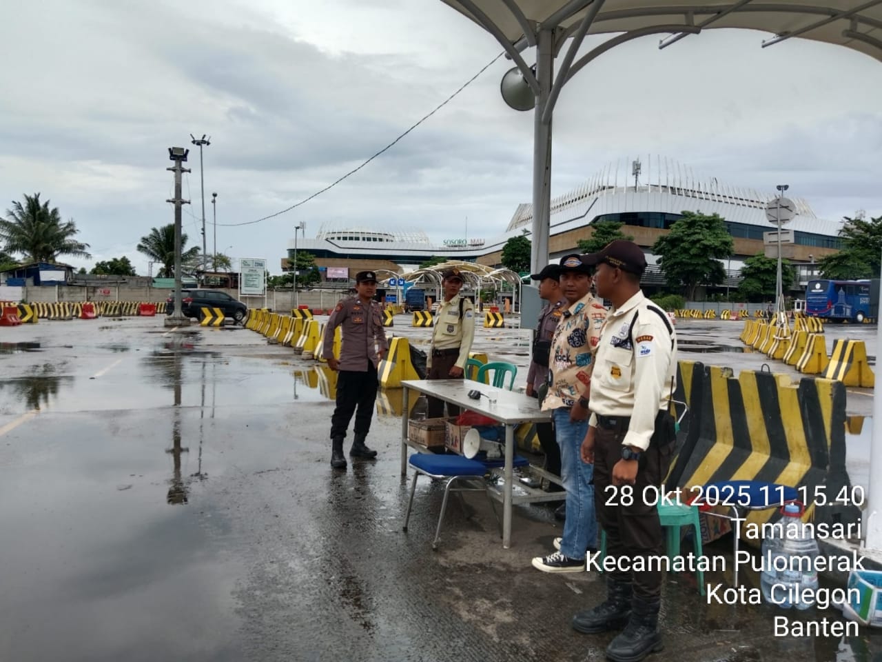 Cilegon - Personel Polsek Kskp Merak Polres Cilegon Polda Banten melaksanakan sambang dan patroli kawasan pelabuhan merak dalam rangka menjaga Harkamtibmas di Kawasan Pelabuhan Merak, Selasa (28/10/2025).
