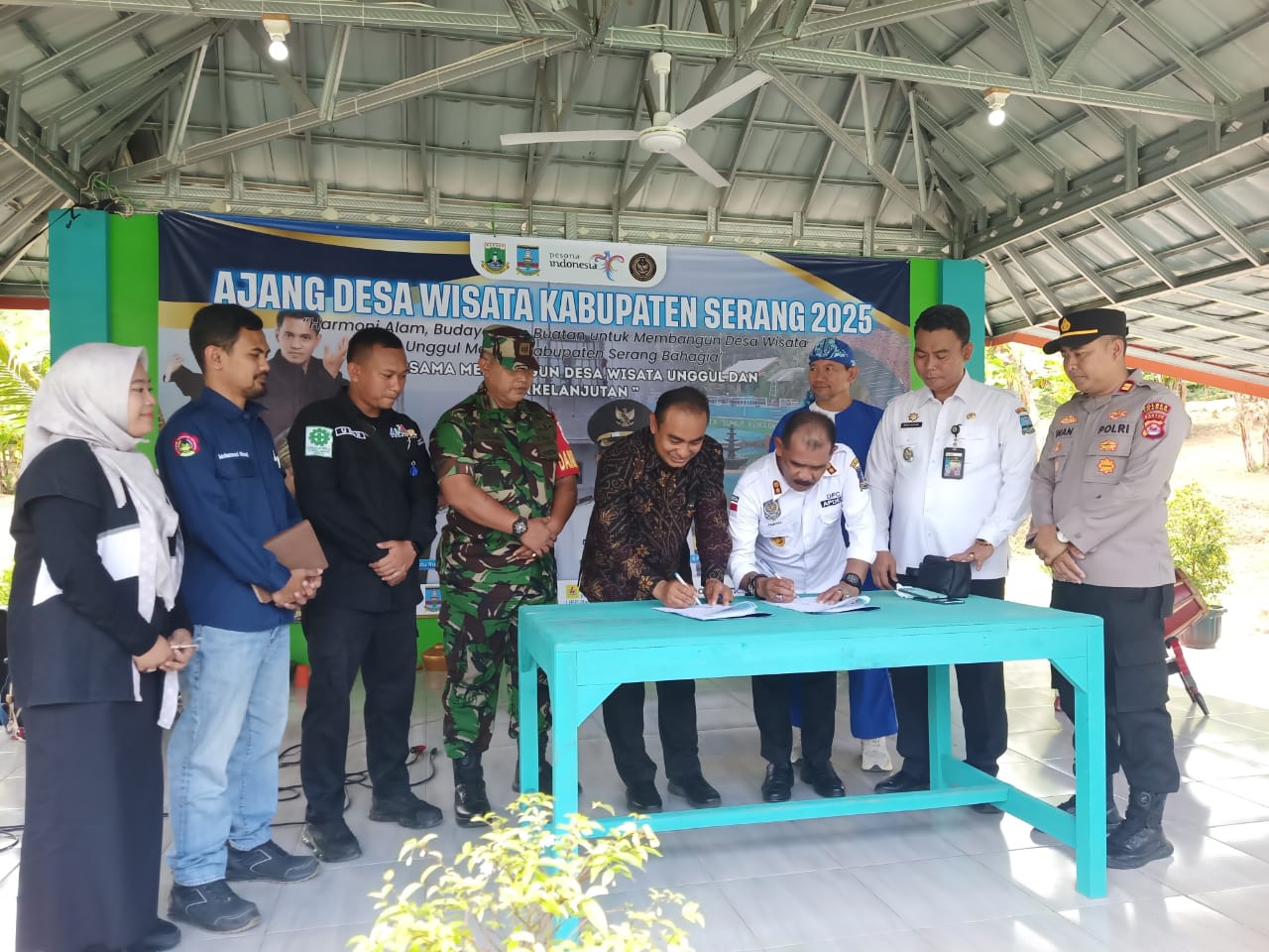 Dalam Sambutan Bupati Serang, Atas Nama Pribadi dan Pemerintah Kabupaten Serang Saya menyampaikan apresiasi dan penghargaan setinggi-tingginya kepada Bapak/Ibu semua yang telah bekerja keras dalam mengelola dan mengembangkan potensi wisata di desa