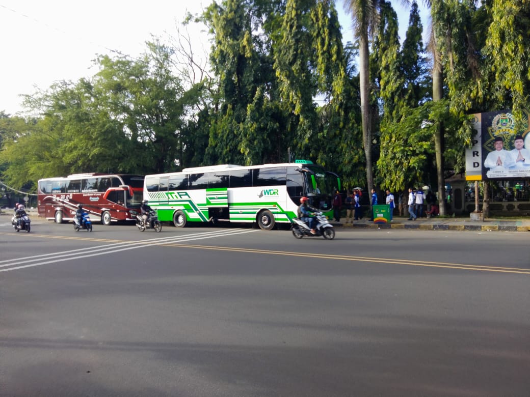 Kegiatan pengamanan dilaksanakan untuk memastikan situasi tetap aman, tertib, dan kondusif selama proses pemberangkatan hingga perjalanan para peserta aksi menuju lokasi kegiatan di Jakarta.