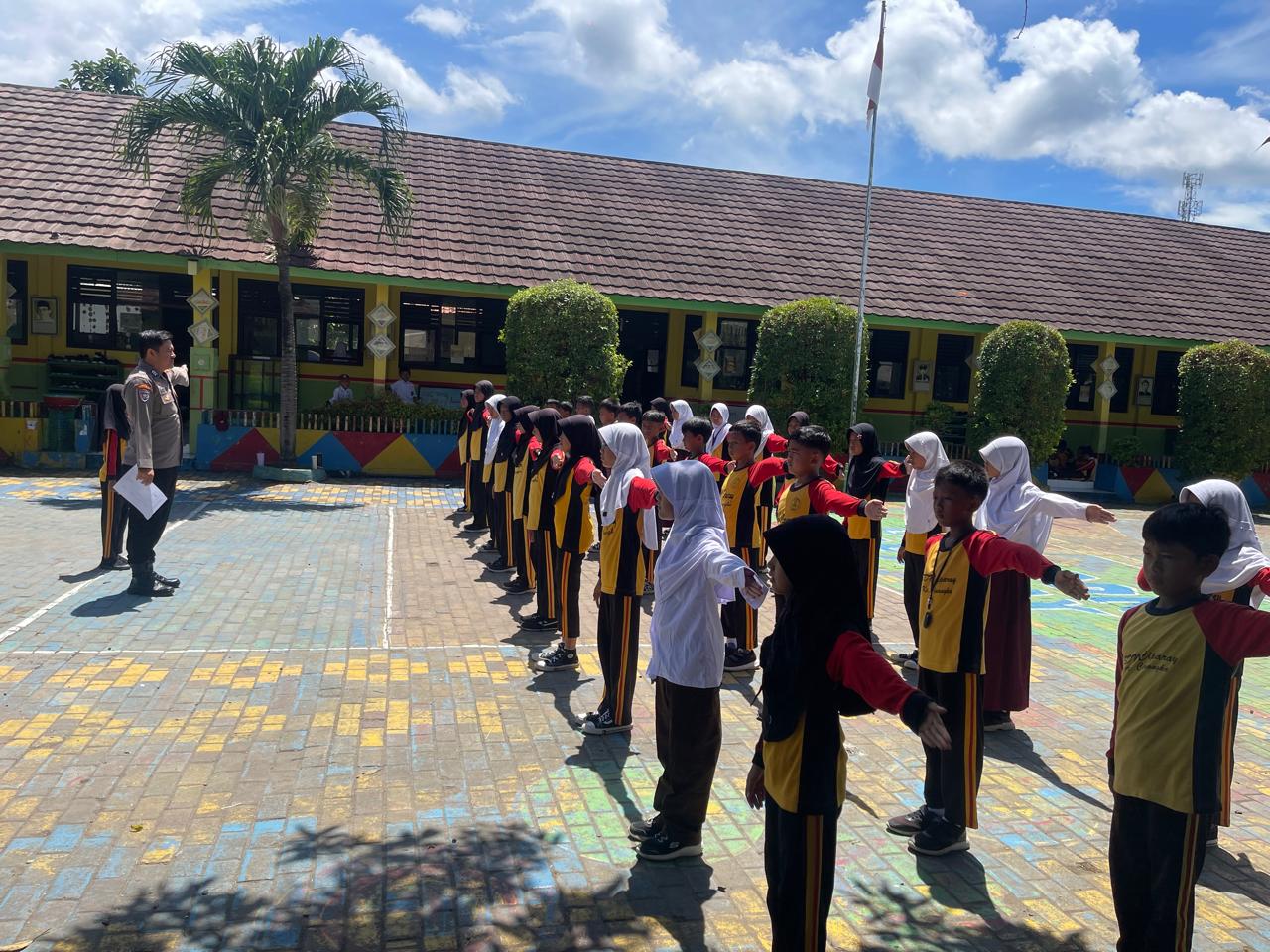 Dalam sambutannya, Bhabinkamtibmas menyampaikan bahwa kegiatan ini merupakan wujud nyata kepedulian Polri terhadap dunia pendidikan serta pembinaan generasi muda agar tumbuh menjadi pelajar yang disiplin, bertanggung jawab, dan cinta tanah air.