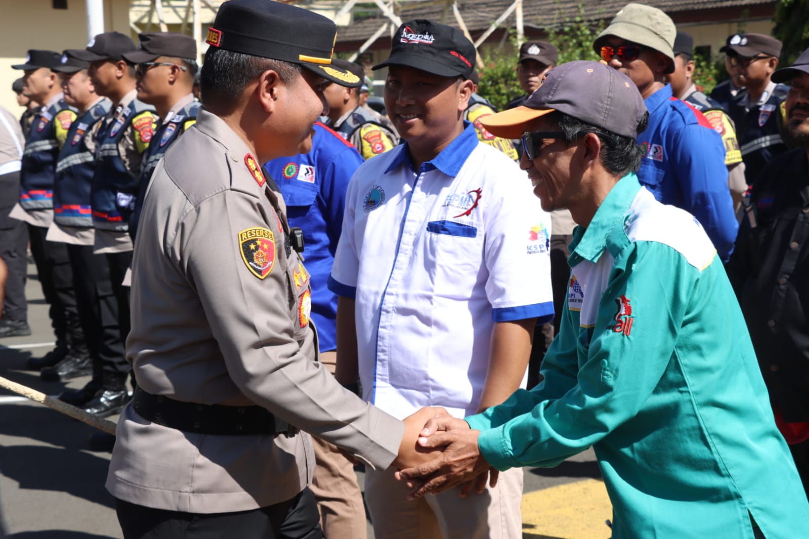 Polres Cilegon melaksanakan apel bersama dengan para pekerja yang tergabung dalam serikat buruh serta komunitas ojek online (ojol) dalam rangka memperkuat sinergi menjaga keamanan dan ketertiban masyarakat (kamtibmas) di wilayah hukum Polres Cilegon.