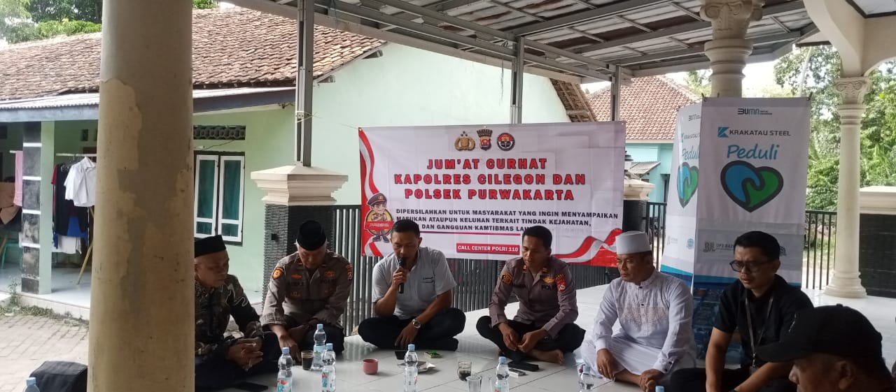 -POLRES CILEGON–Polda Banten. Kapolsek Purwakarta menggelar kegiatan Jumat Curhat di Masjid Ridhollah, lingkungan Gempol Kulon, Kelurahan Pabean, Kecamatan Bungur Kerta, Kota Cilegon. Kegiatan ini dilaksanakan bersama dengan Lurah Pabean dan PT KSI sebagai bentuk kepedulian terhadap masyarakat.Jumat.(31-10-2025).