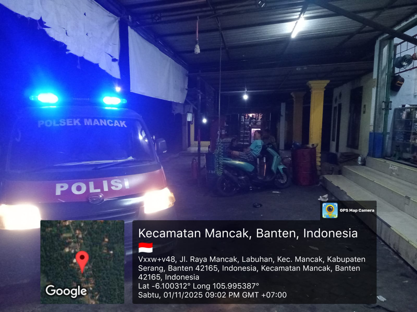 Mancak - Personel Polsek Mancak Polres Cilegon Polda Banten sebagai bentuk mendukung Program Quick Wins Presisi Polri laksanakan Patroli pada malam hari di kewilayahan guna untuk menekan 3C (Curat, Curas, Curanmor) dan gangguan kriminalitas lainnya. MINGGU (02/11/2025).