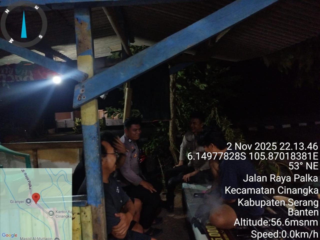 *Polres Cilegon* || Personel Bhabinkamtibmas Polsek Cinangka melaksanakan Program Komandan Wish Kapolda Banten RONDA SATKAMLING menyampaikan komunikasi dengan Petugas Siskamling agar berperan aktif dalam menciptakan Harkamtibmas yang aman dan Kondusif, Senin (03/11/2025).
