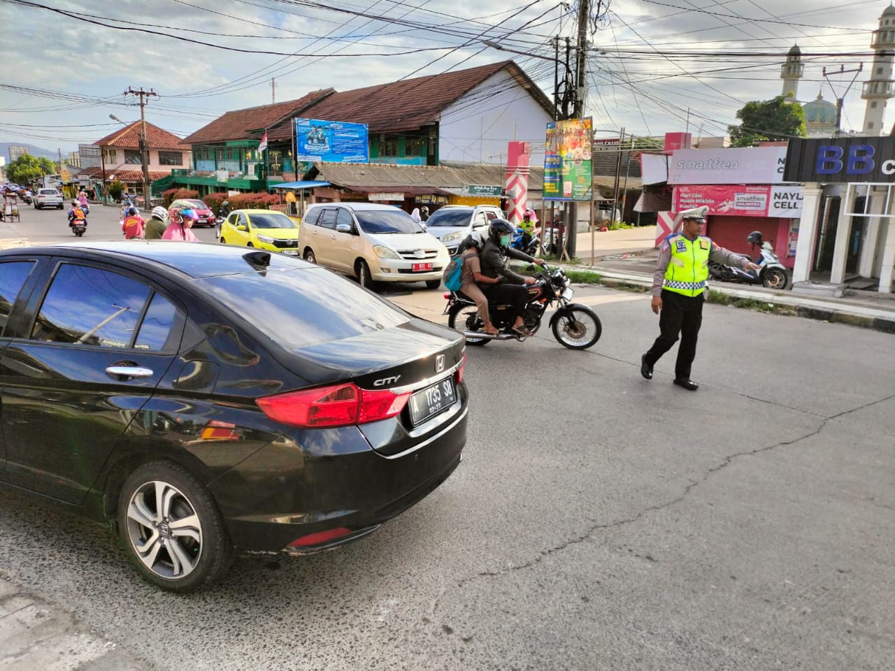 Gatur lalin Polsek Cilegon Polres Cilegon lancarkan arus kendaraan.