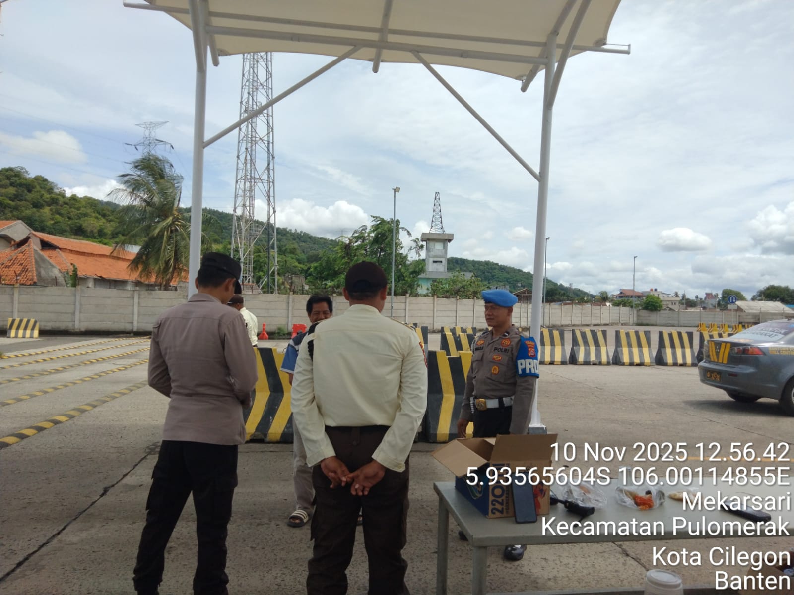 Cilegon - Personel Polsek Kskp Merak Polres Cilegon Polda Banten melaksanakan sambang dan patroli kawasan pelabuhan merak dalam rangka menjaga Harkamtibmas di Kawasan Pelabuhan Merak, Senin (10/11/2025).