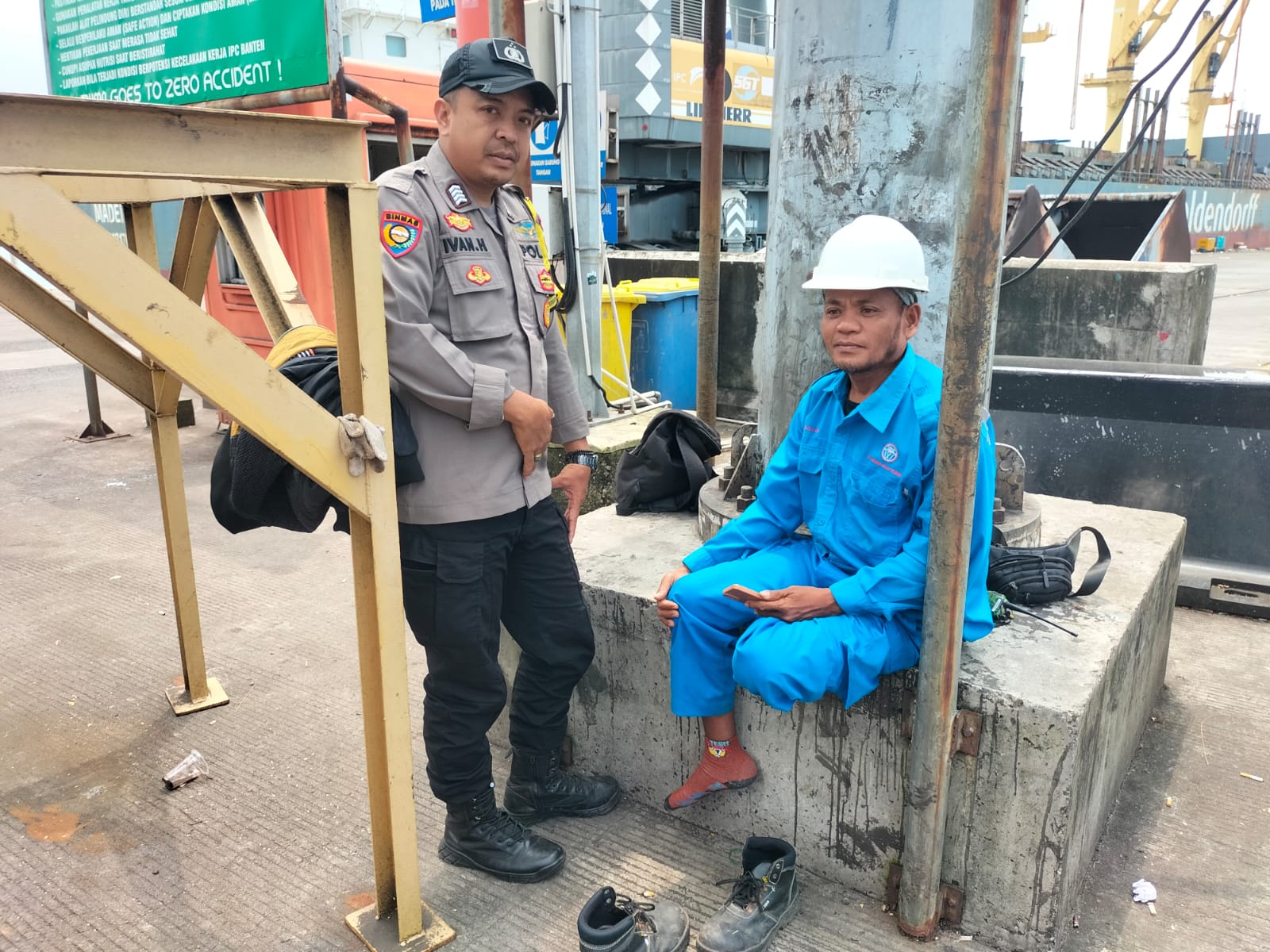 Jalin Silaturahmi, Bhabinkamtibmas Pelabuhan Polsek KSKP Banten berbincang dengan Buruh Pelabuhan