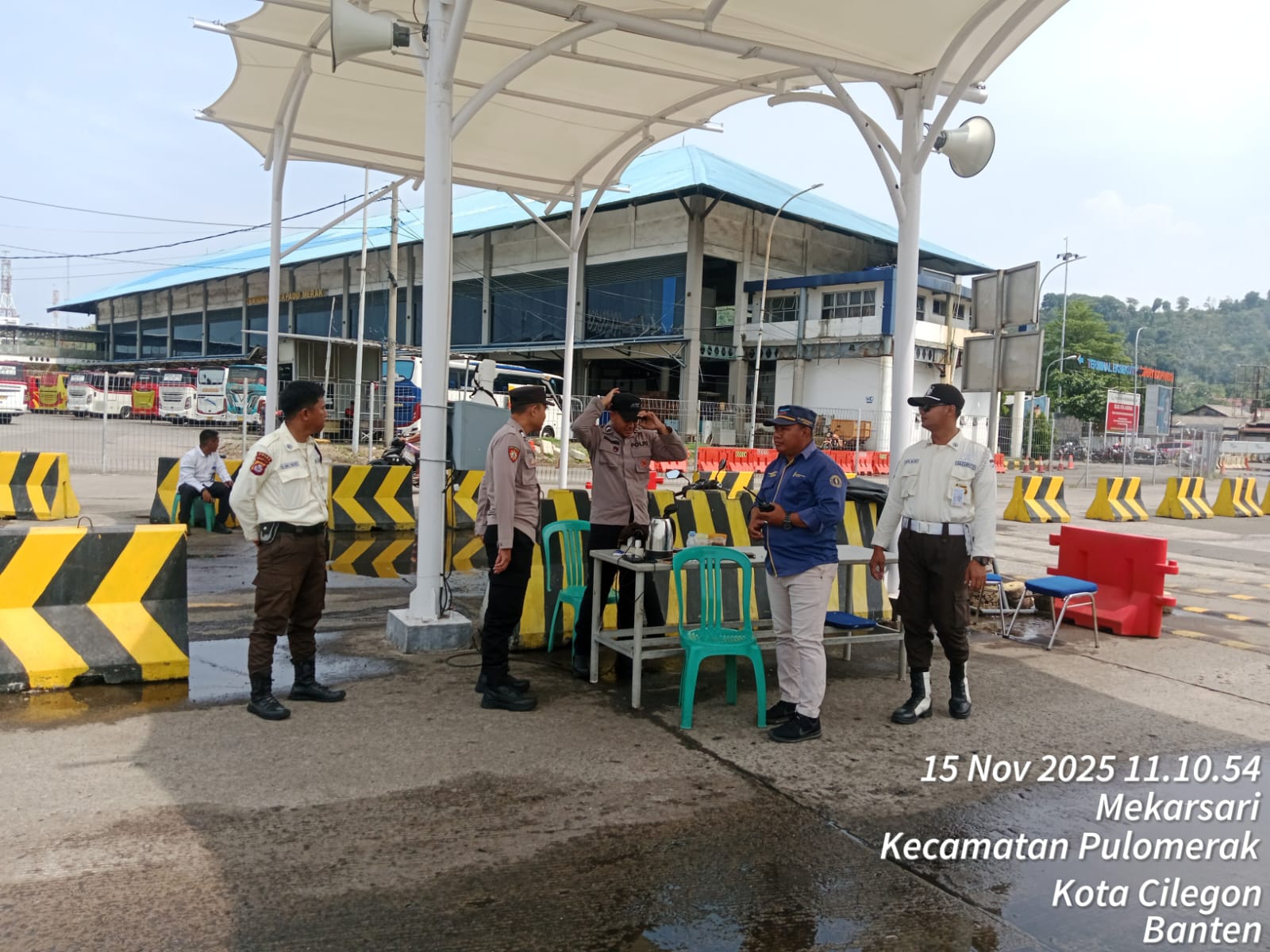 Cilegon - Personel Polsek Kskp Merak Polres Cilegon Polda Banten melaksanakan sambang dan patroli kawasan pelabuhan merak dalam rangka menjaga Harkamtibmas di Kawasan Pelabuhan Merak, Sabtu (15/11/2025).