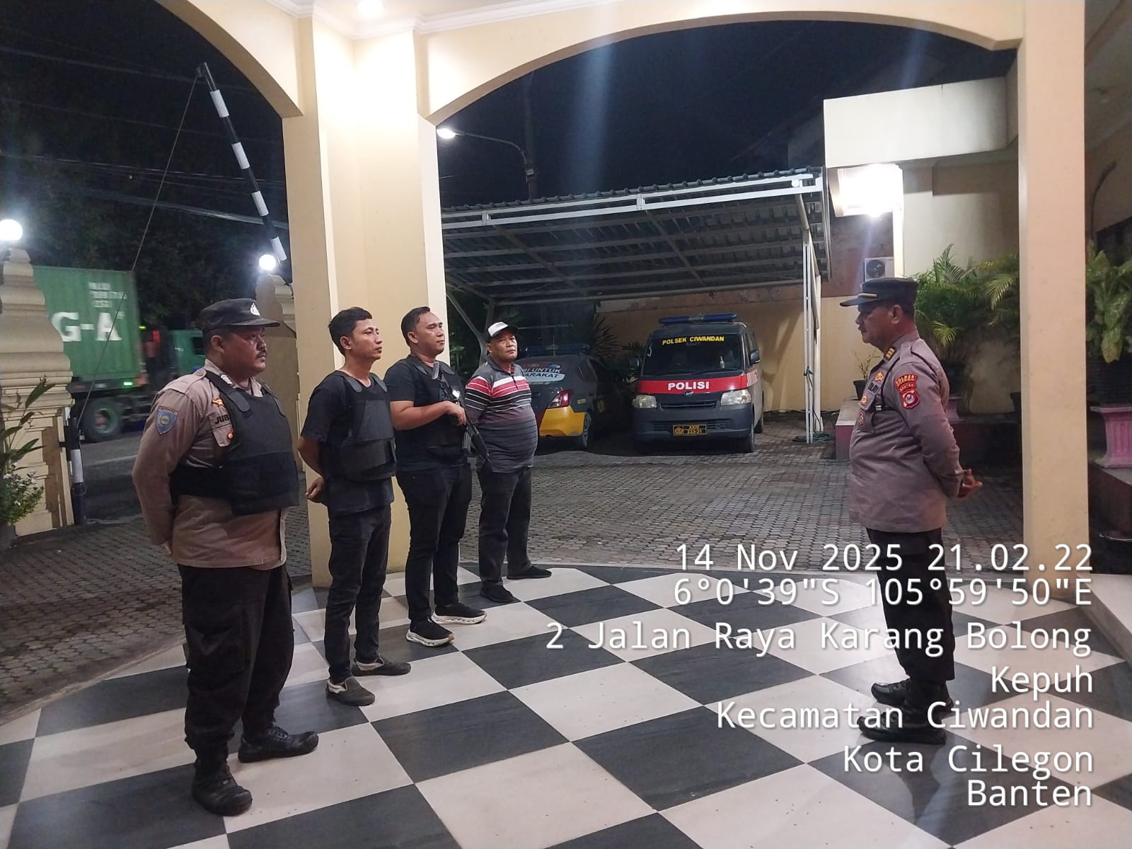 Cilegon - Personil Polsek Ciwandan Polres Cilegon Polda Banten menggelar apel malam Persiapan Patroli yang dipimpin Oleh Pawas Kanit Samapta Polsek Ciwandan AKP Sarpan, Minggu (16/11/2025).