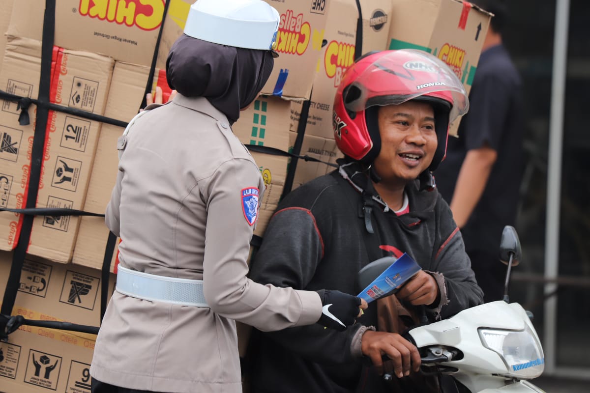 Selain penindakan, petugas juga membagikan leaflet imbauan keselamatan, memberikan sosialisasi langsung kepada pengendara, serta mengingatkan pentingnya mematuhi aturan demi mencegah kecelakaan lalu lintas.