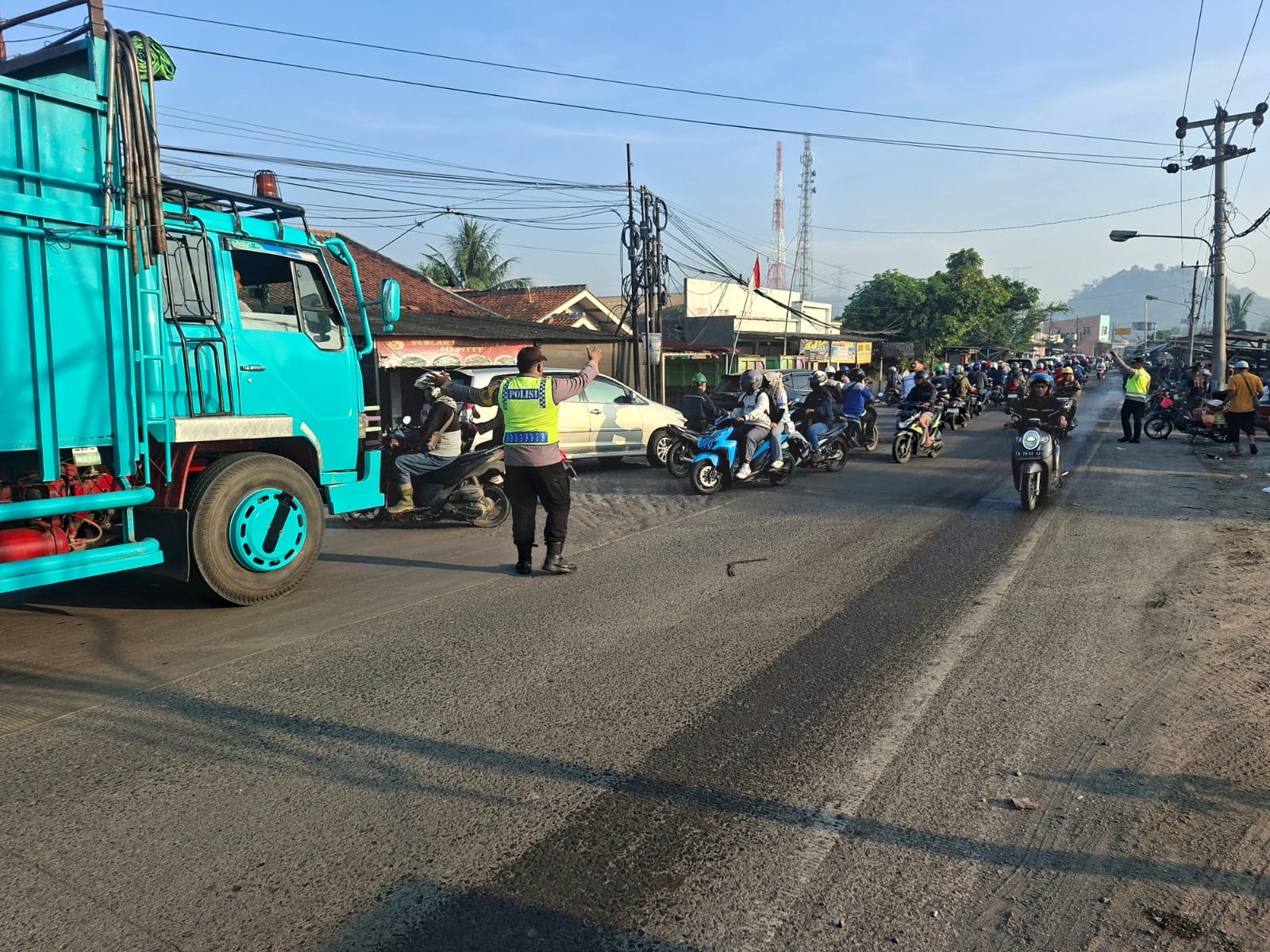 Bantu Lancarkan Lalin Di Pertigaan Wadas Bojonegara,Bripka Susilo Polsek Bojonegara Laksanakan Gatur lalu lintas