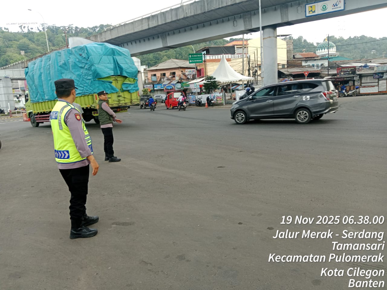 Kapolres Cilegon Polda Banten AKBP Martua Raja Taripar Laut Silitonga melalui Kapolsek Kskp Merak AKP Gusti Almasri P menyampaikan bahwa kegiatan pengaturan antrian ini adalah dalam rangka memberikan pelayanan kepada masyrakat yang akan menyebrang ke Bakauheni atau Sumatra melalui jalur laut dengan menaiki kapal Ferry.