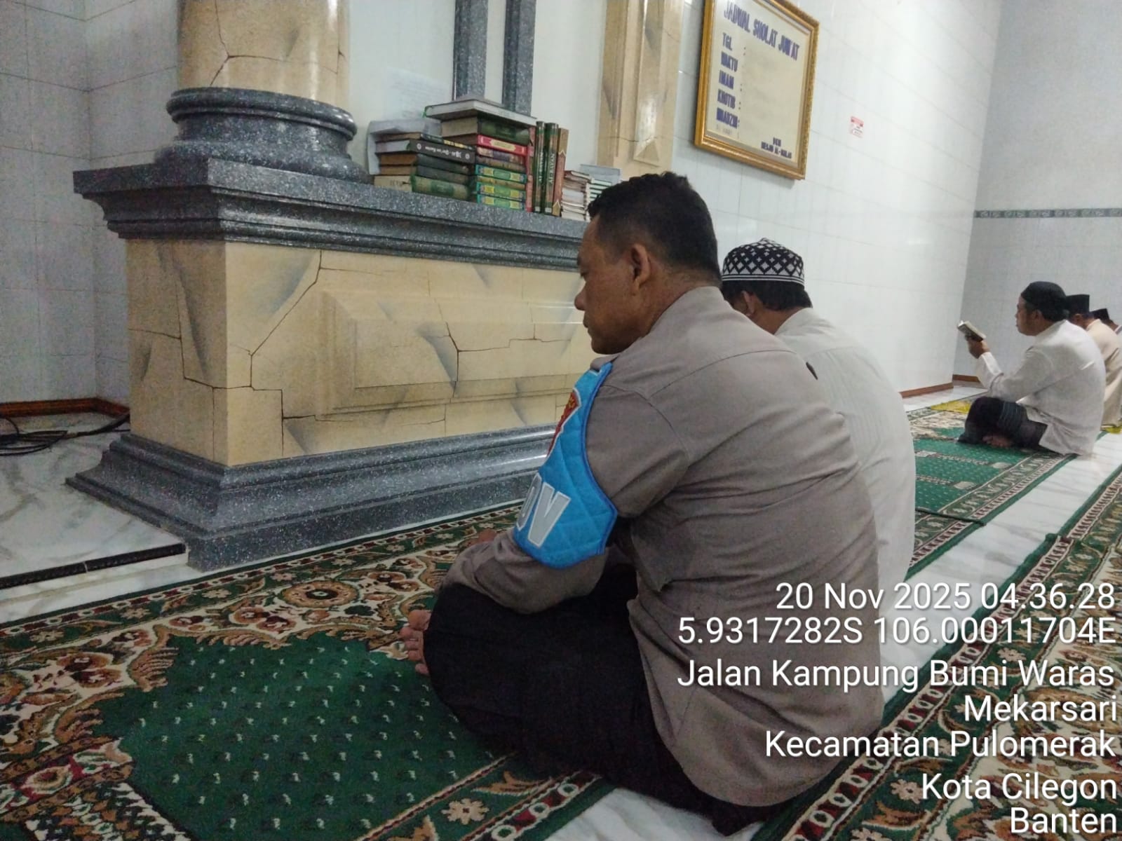 Cilegon – Personil Kskp Merak Polres Cilegon Polda Banten menggelar kegiatan Pembinaan Rohani dengan shalat subuh keliling di Masjid Yang ada Di Daerah hukum Polsek Kp Merak Polres Cilegon Polda Banten, Kamis (20/11/2025).
