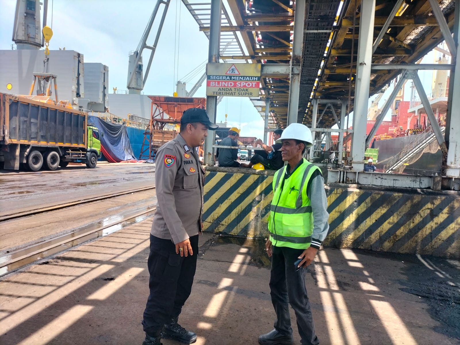 Jalin Silaturahmi, Bhabinkamtibmas Pelabuhan Polsek KP Banten berbincang ke Buruh Pelabuhan