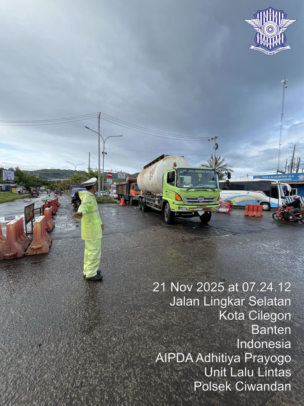 Cilegon - Pelayanan Prima Kepolisian Kepada Warga Masyarakat dan Guna menciptakan situasi lalu lintas yang aman, tertib dan lancar, Personel Unit Lantas Polsek Ciwandan Polres Cilegon Polda Banten secara rutin melaksanakan pengaturan lalu lintas, Jum'at (21/11/2025).